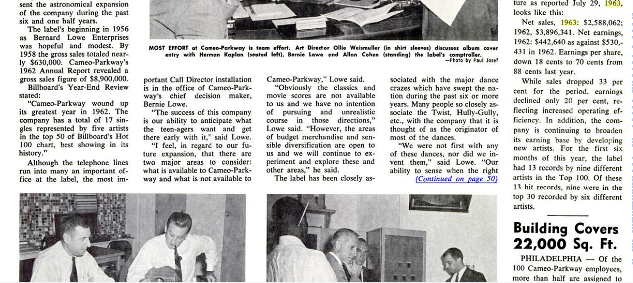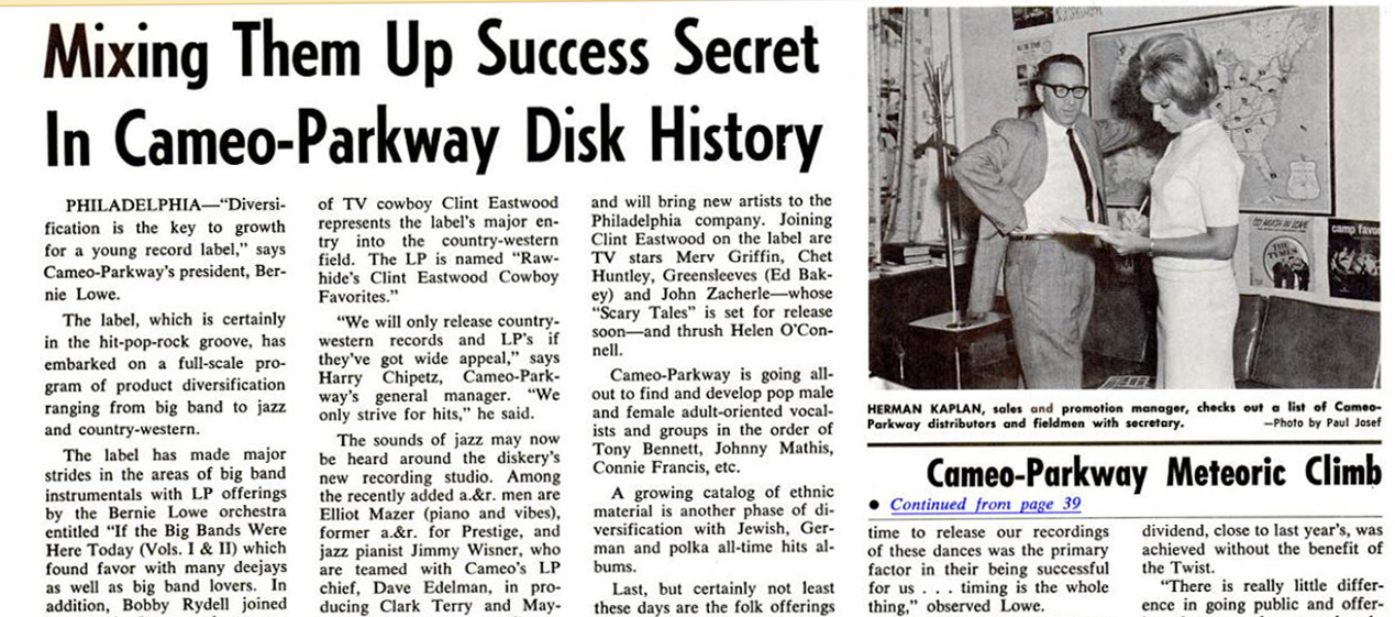 songwriter Bernie Lowe, Cameo Records and its Parkway subsidiary were the home
