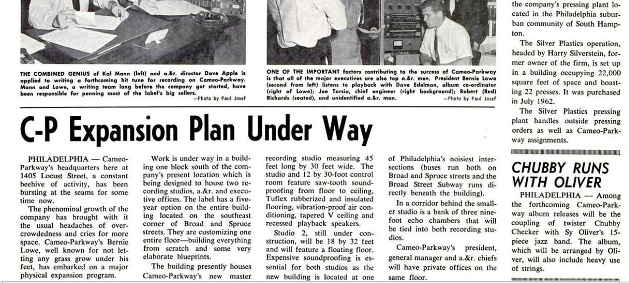 studio. He began servicing other studios, one of which was Cameo Parkway. He